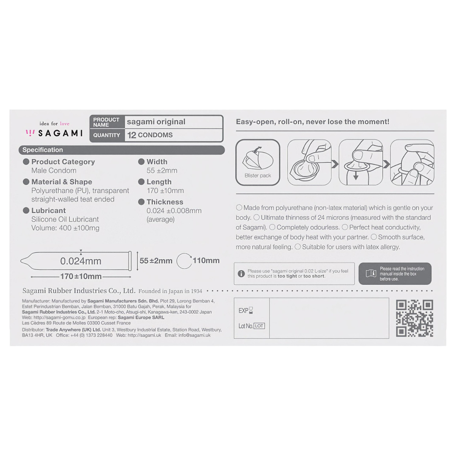 Caractéristiques du produit – Sagami Original 0.02 préservatif (12 unités)