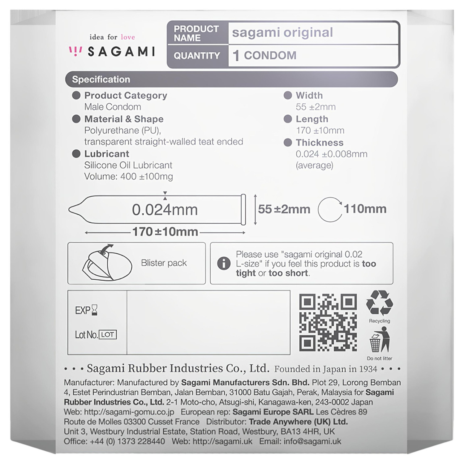 Caractéristiques du produit - Sagami Original 0.02 préservatif (1 pièce)