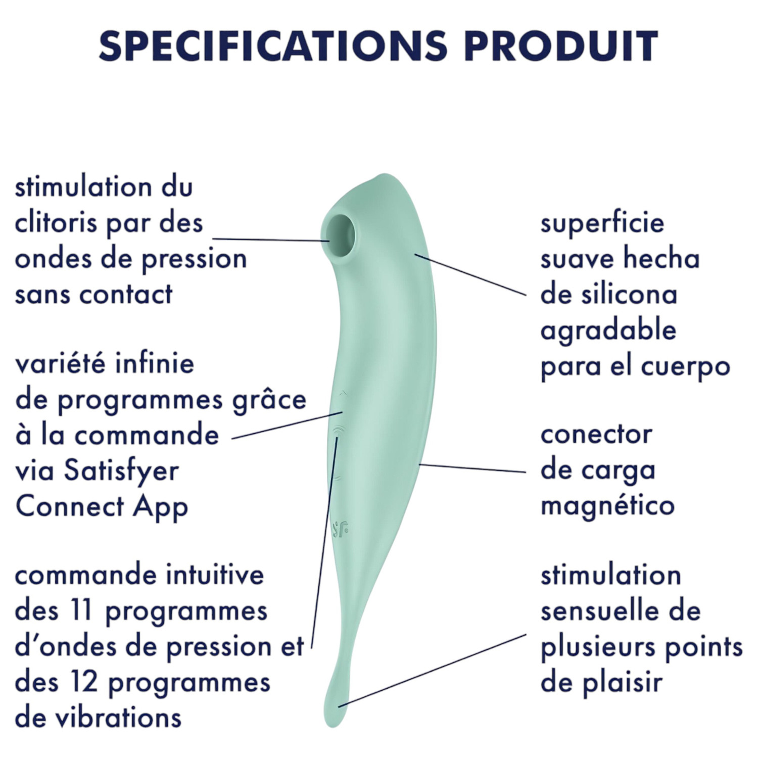 Le Satisfyer Twirling Pro, c’est un vibromasseur ultra innovant à double fonction, qui combine un stimulateur clitoridien à ondes d’air et des vibrations pour décupler le plaisir !