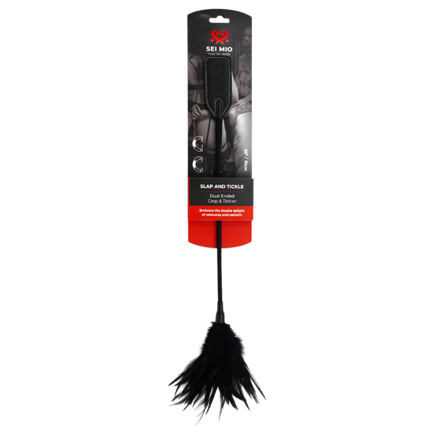 Laisse-toi emporter par le parfait mélange de séduction et de plaisir avec le Sei Mio Slap and Tickle, un accessoire double face conçu pour pimenter tous tes jeux les plus sensuels.