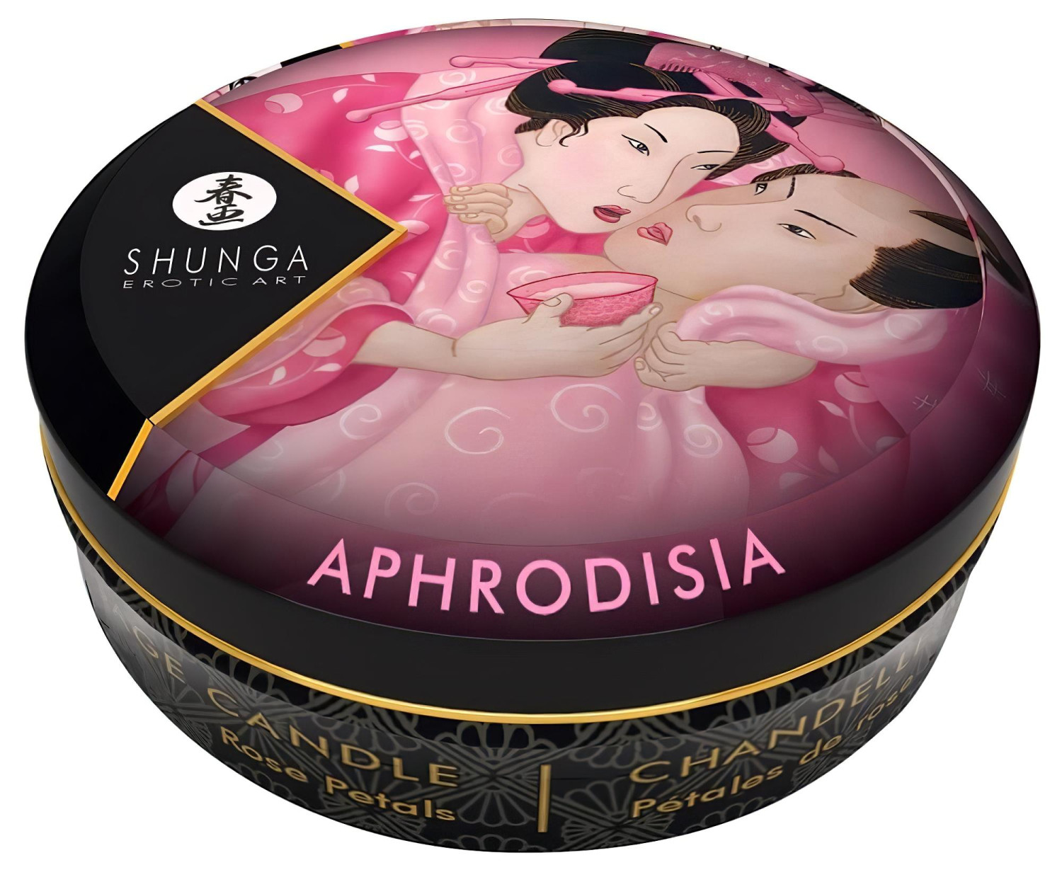 • 1 bougie de massage parfumée à la rose dans une boîte métallique refermable de 30 ml.