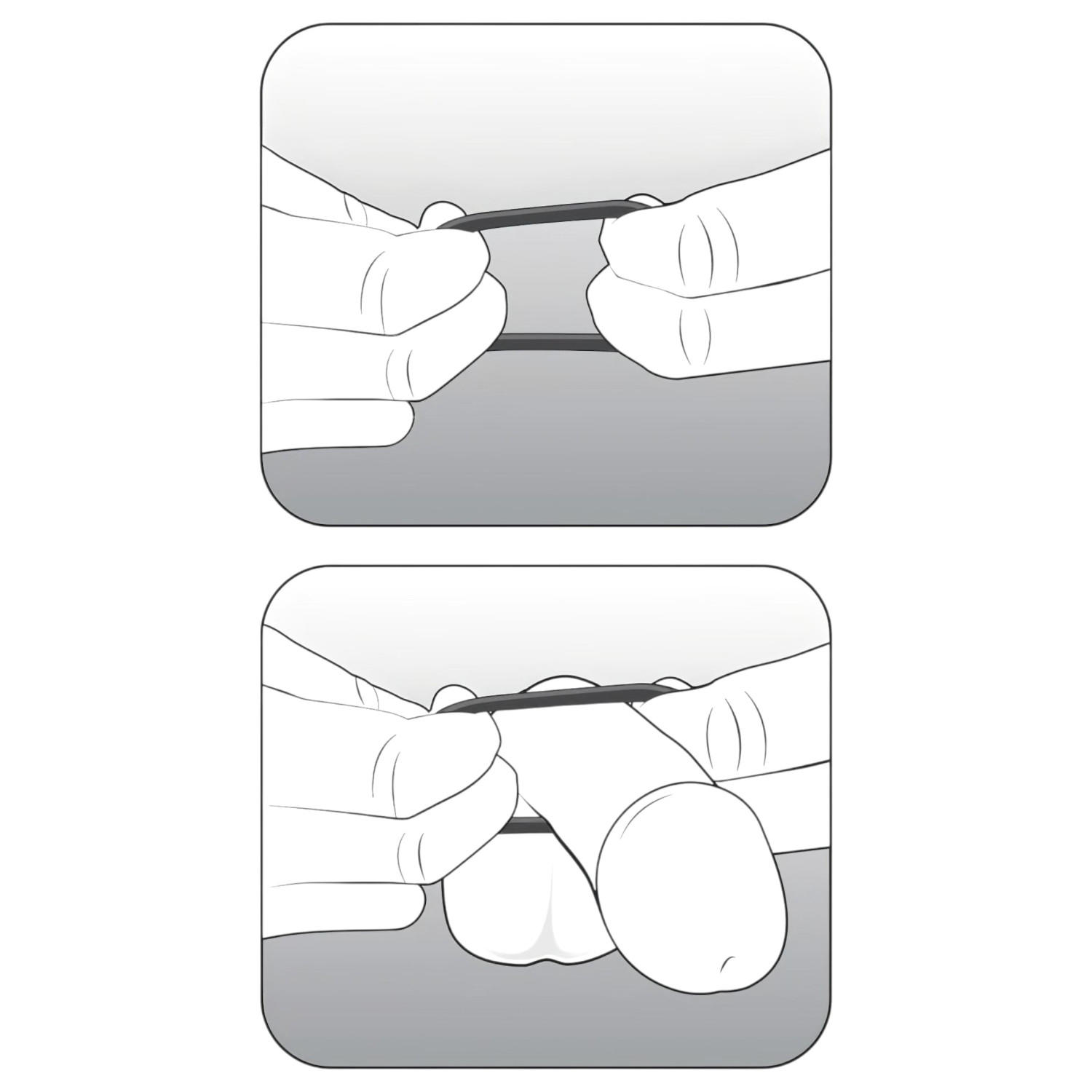 • Étirer l'anneau et le placer à la base du pénis ou autour du scrotum