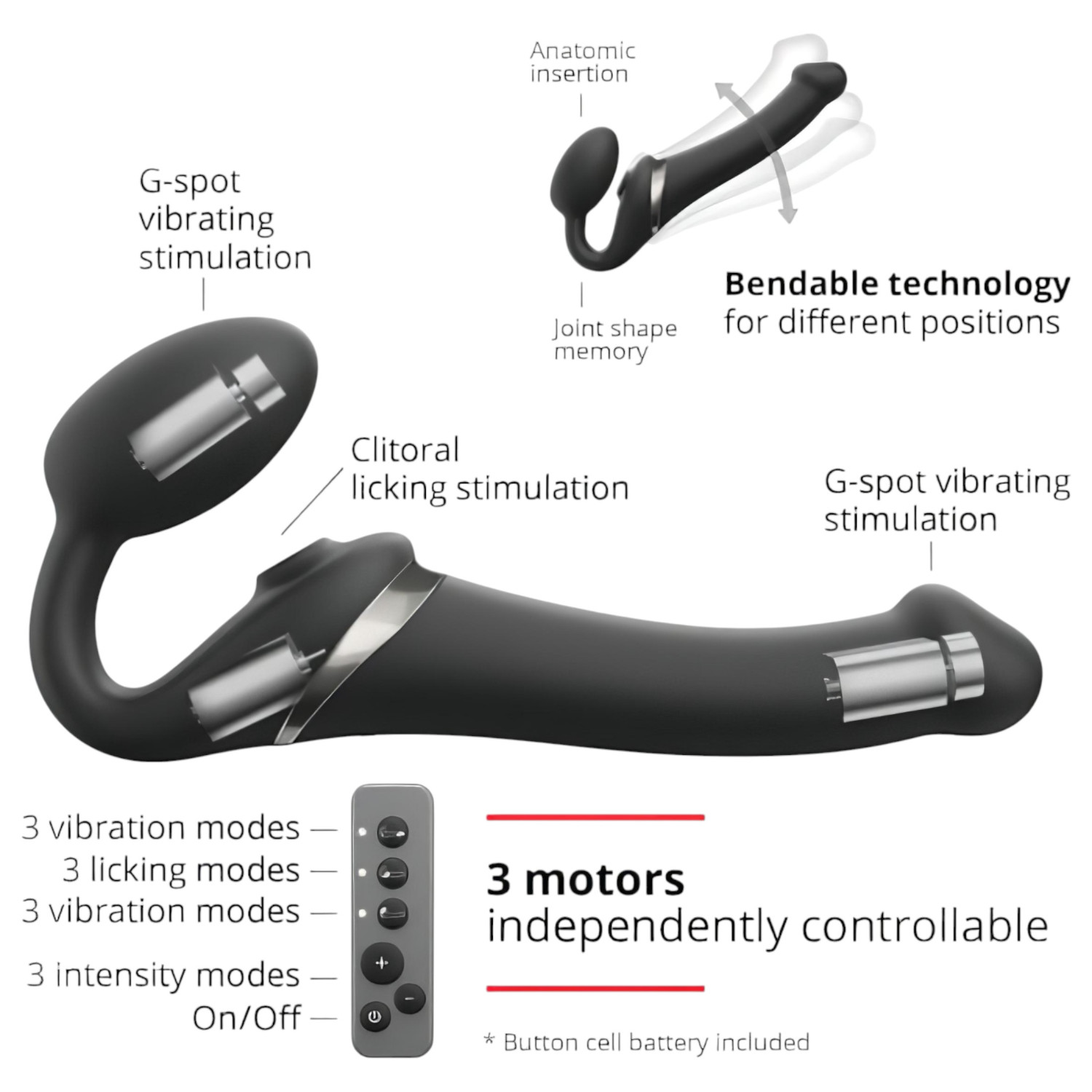 • Sans harnais : Se porte et s’utilise sans sangle, idéal pour les jeux de rôle ou les moments intimes entre femmes.