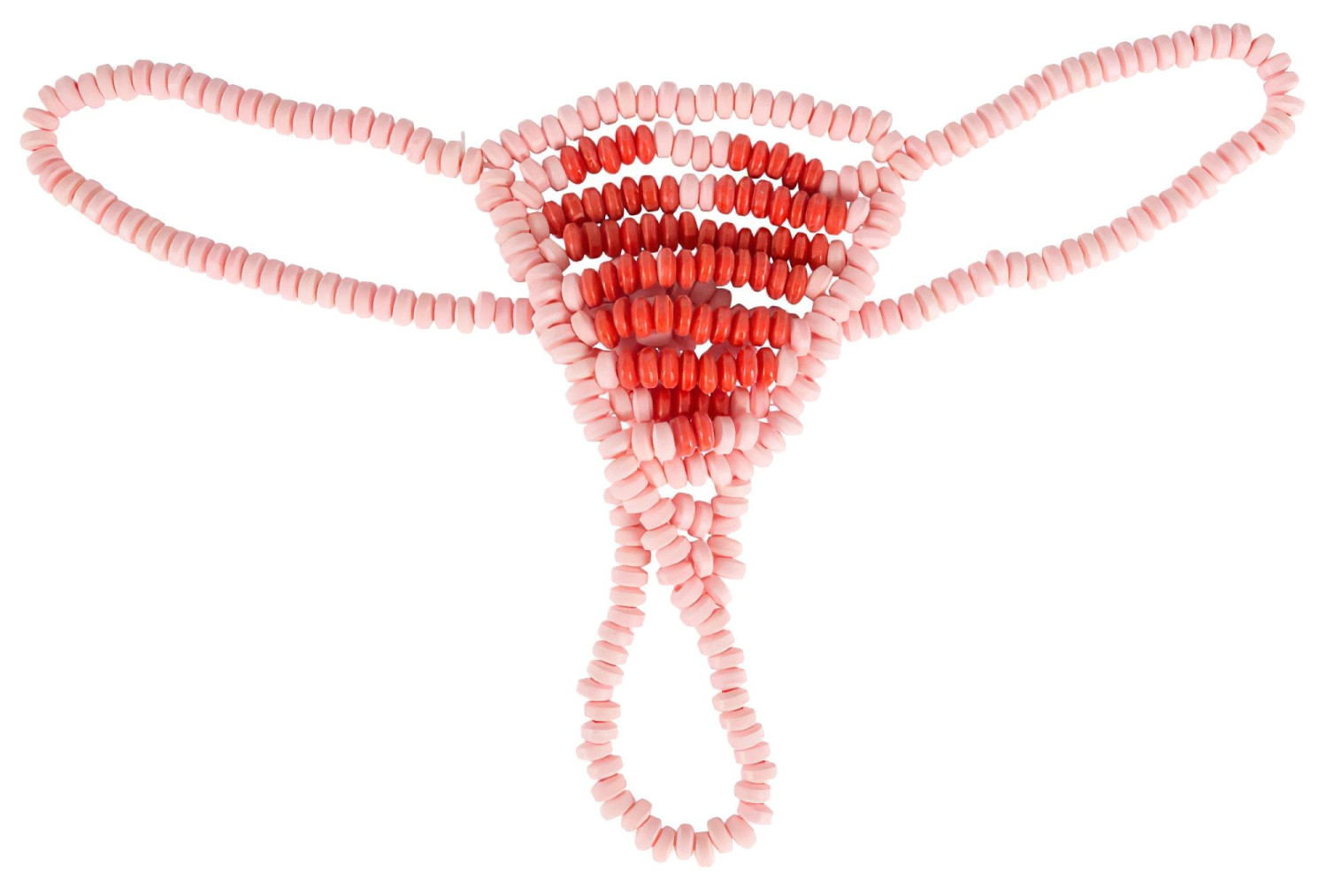 • Lingerie sexy à croquer, faite de perles de bonbons rouge et rose
