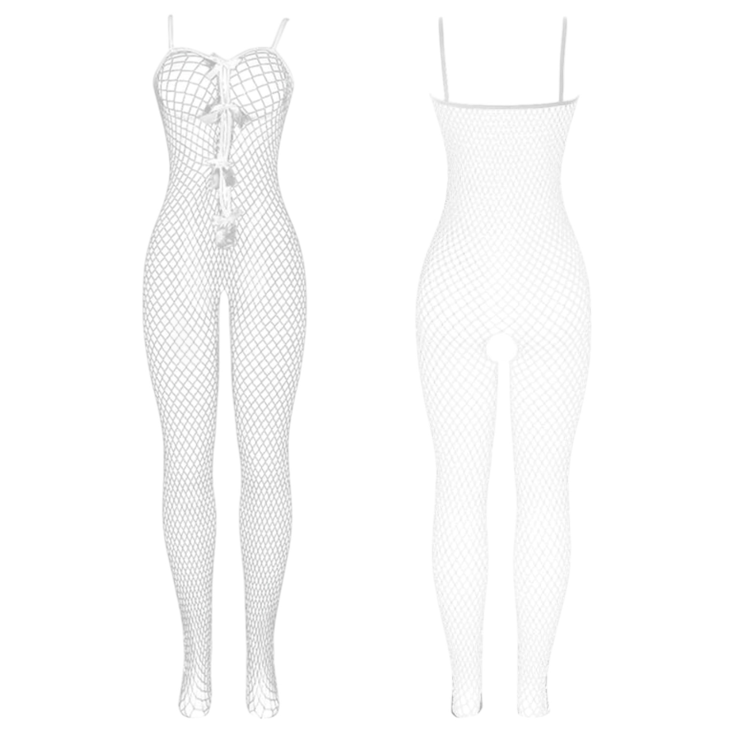 Cette combinaison résille avec entrejambe ouvert et détails nœuds est à la fois élégante et follement sexy, parfaite pour vos moments intimes.