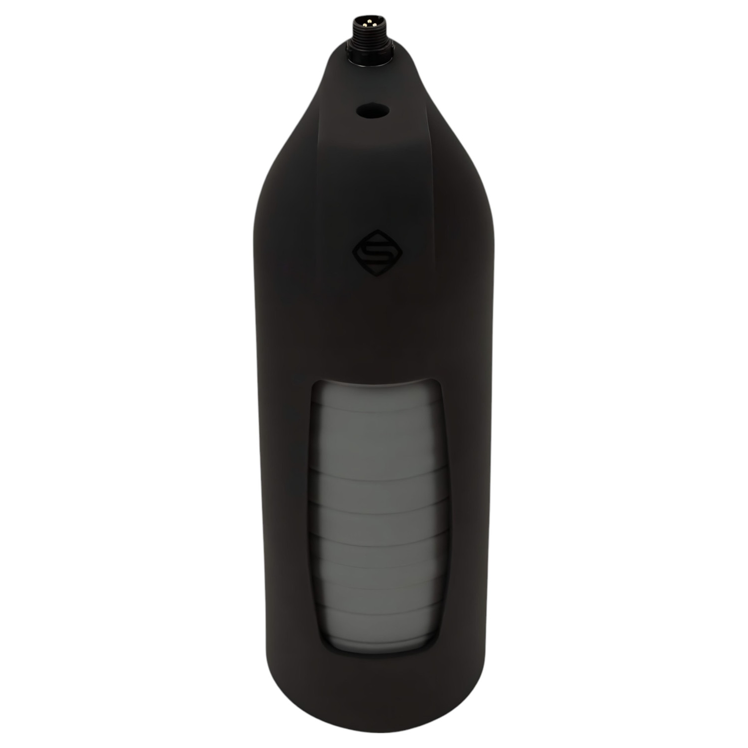 • Gaine (taille L) : Longueur 20 cm, profondeur d’insertion 15,5 cm, diamètre interne 2,5 cm (extensible), diamètre externe 6,8 cm, épaisseur de paroi 1,5 cm.
