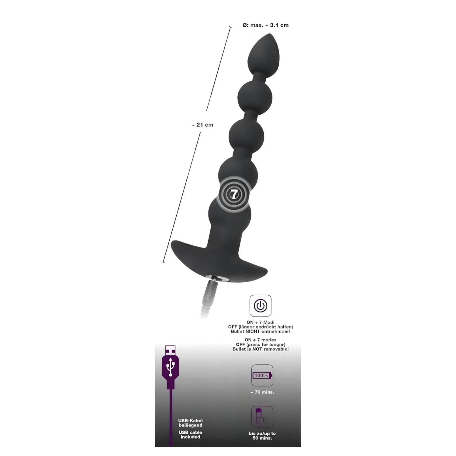 Black Velvet - vibro-anale 5 perles rechargeable (noir)