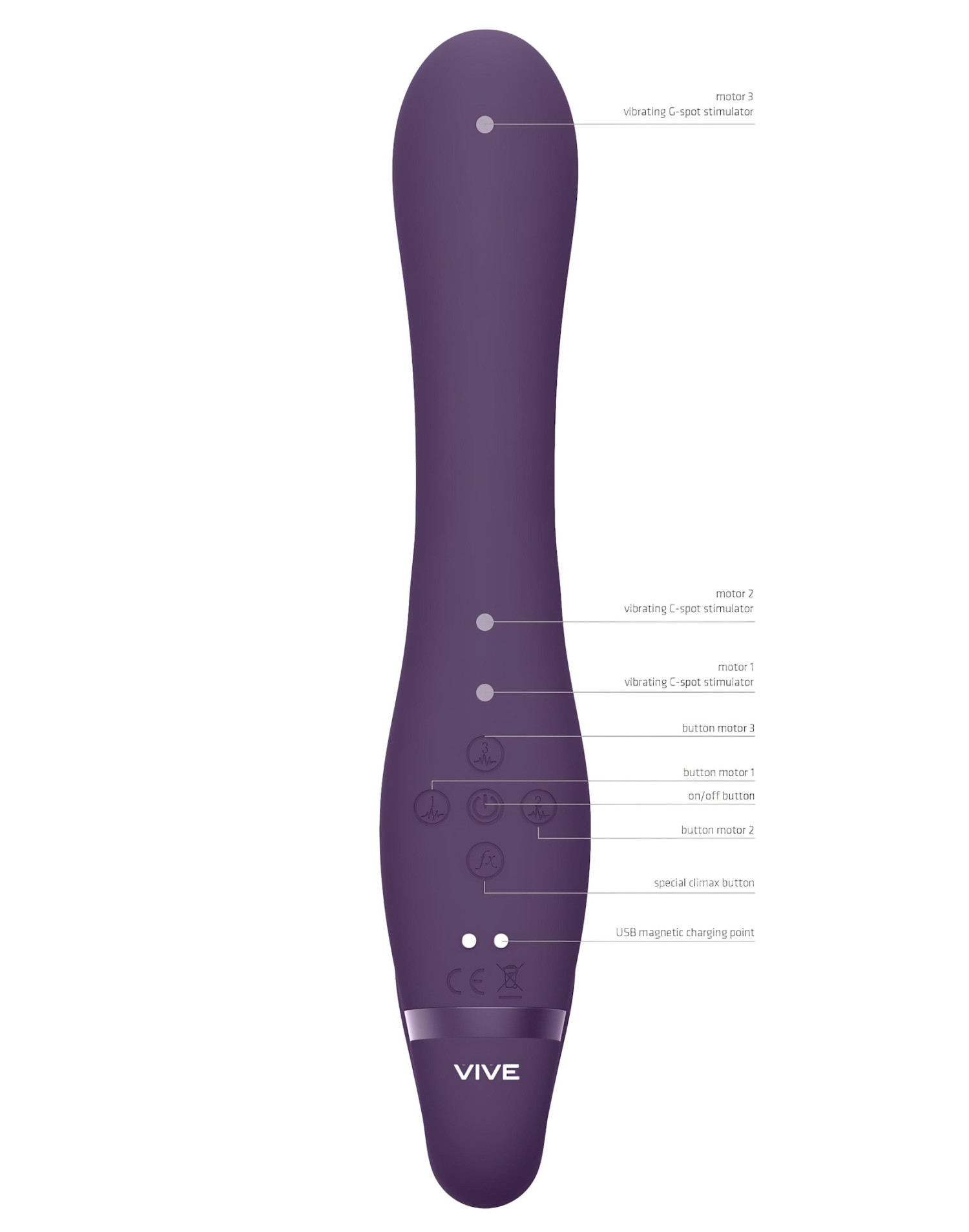 Voici LE jouet tant attendu de Vive, la marque experte des godemichés sans harnais, maintenant avec un stimulateur clitoridien façon lapin, sans besoin de lanière !