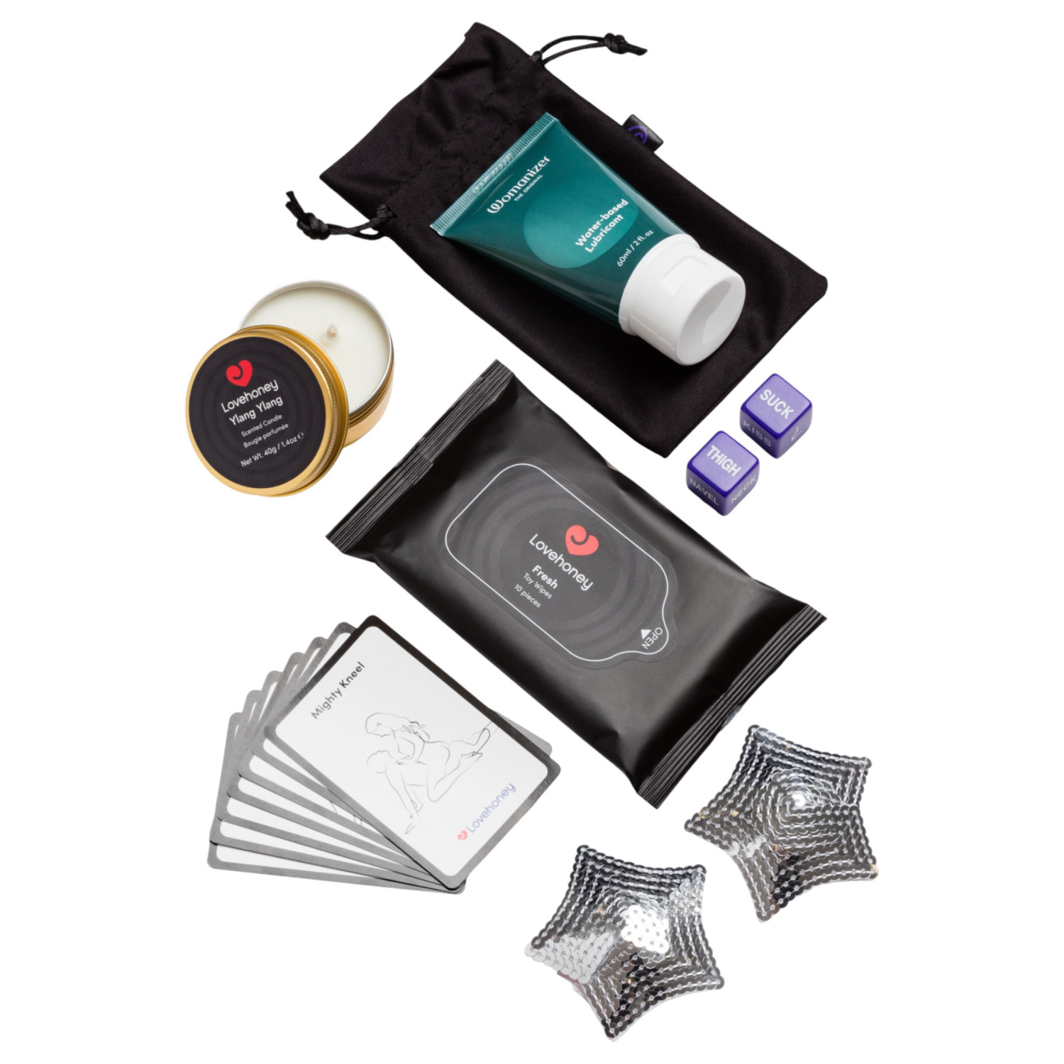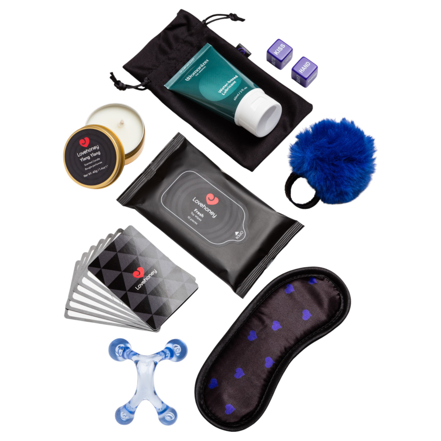 • 3 × accessoires (ex. masque pour les yeux, petits accessoires pour la sensualité)