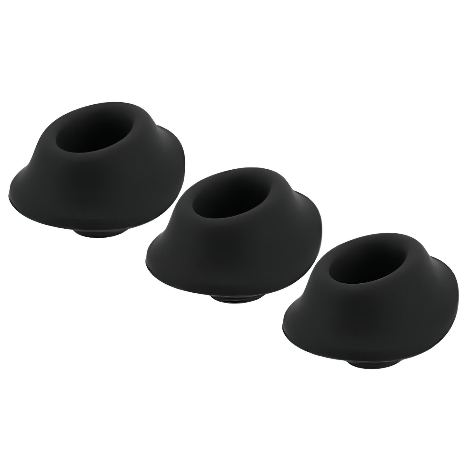 Un ensemble de têtes d'aspiration de rechange pour les appareils Womanizer Premium & Classic, contenant trois petites (S) têtes d'aspiration noires en silicone de qualité médicale.
