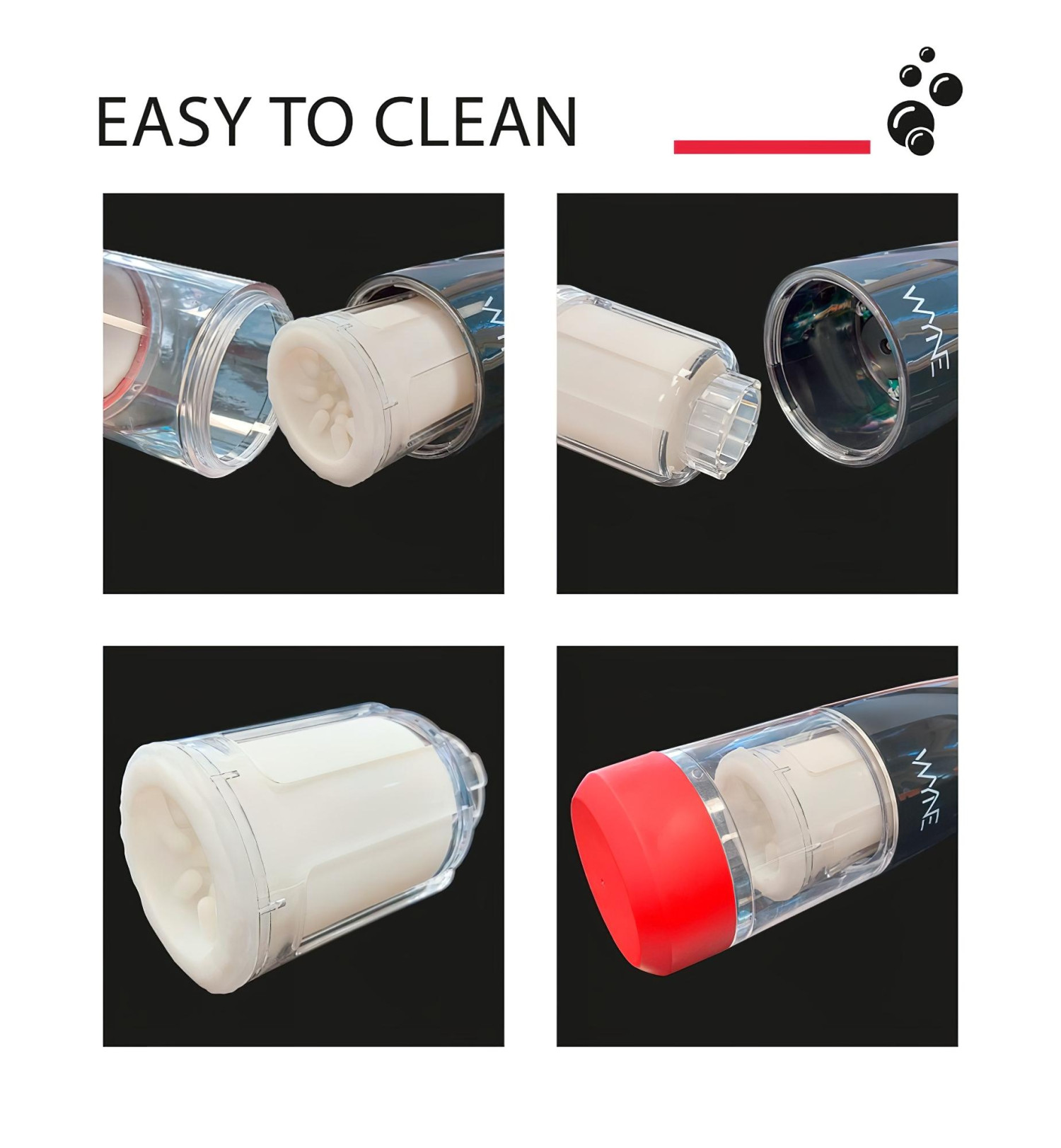Le manchon intérieur doux est amovible pour un nettoyage facile à l’eau tiède savonneuse, puis bien rincer et laisser sécher complètement. Pour un max d’hygiène, on conseille un nettoyant spécial sex-toy (réf. 06302500000), à commander séparément.