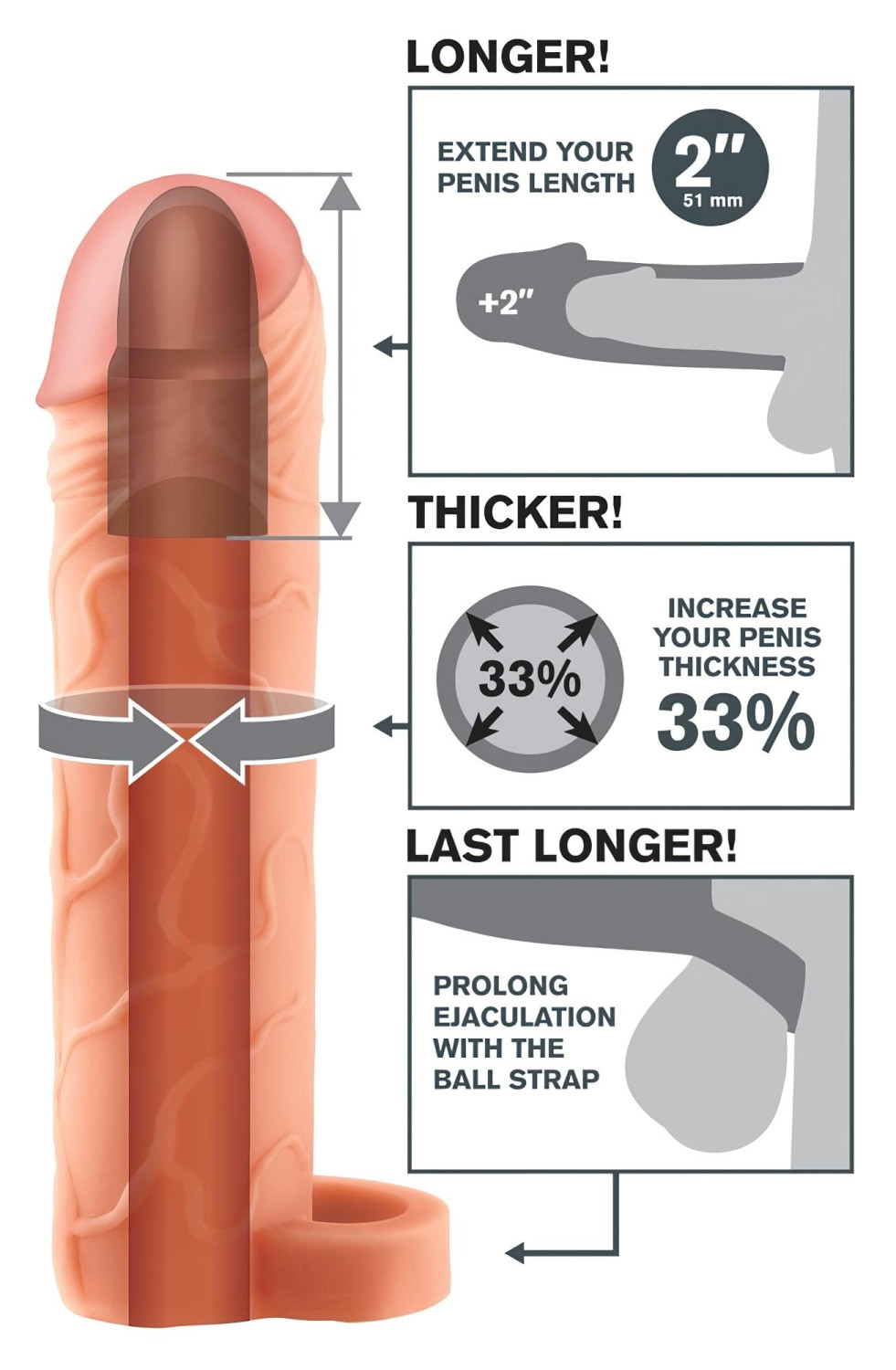 • Allonge et épaissit : ajoute 5,1 cm en longueur et 33 % de diamètre en plus.