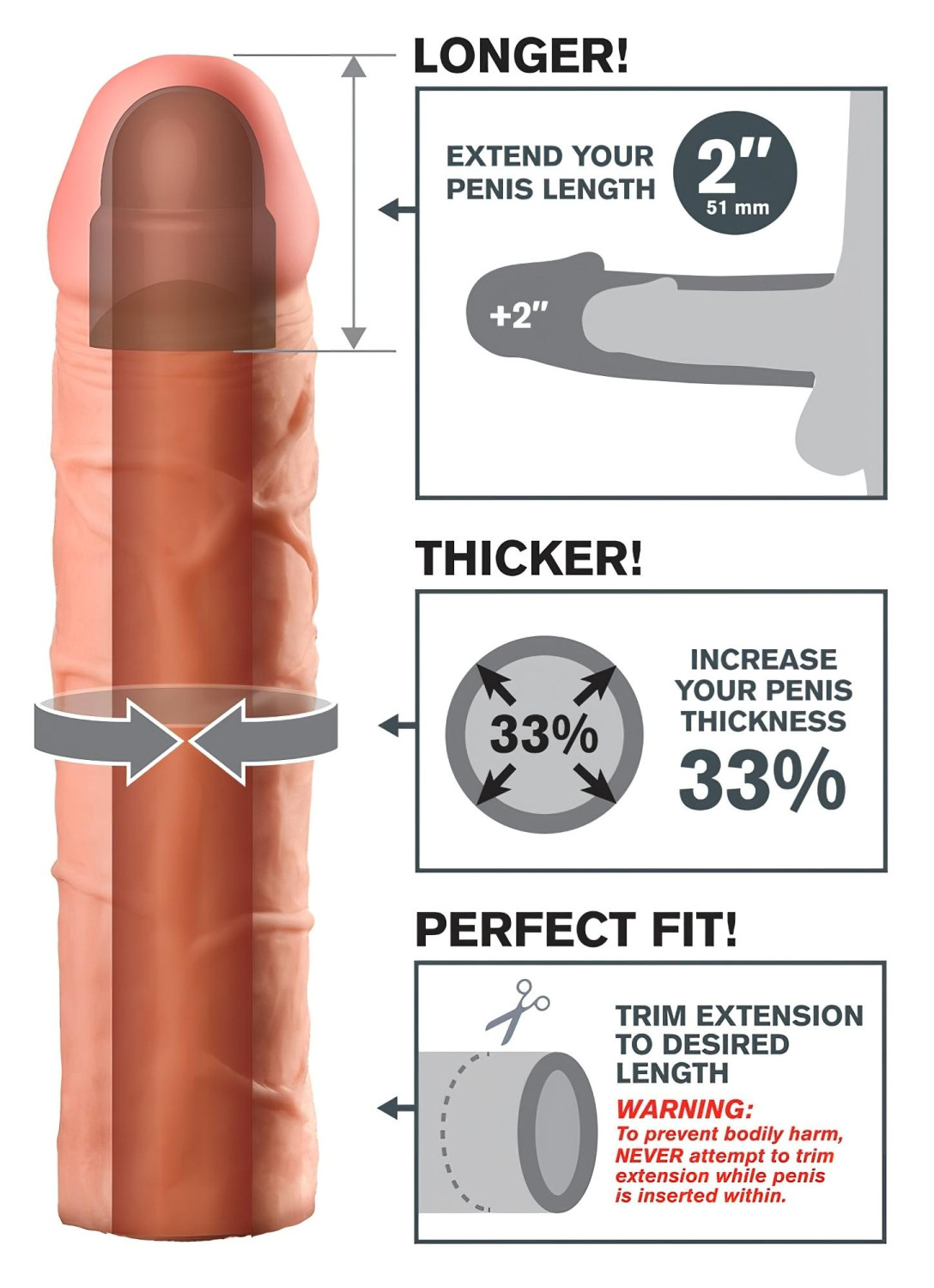 Manchon pénien ultra réaliste, qui augmente la taille de ton sexe sans douleur ! Jusqu’à 33% de volume en plus !