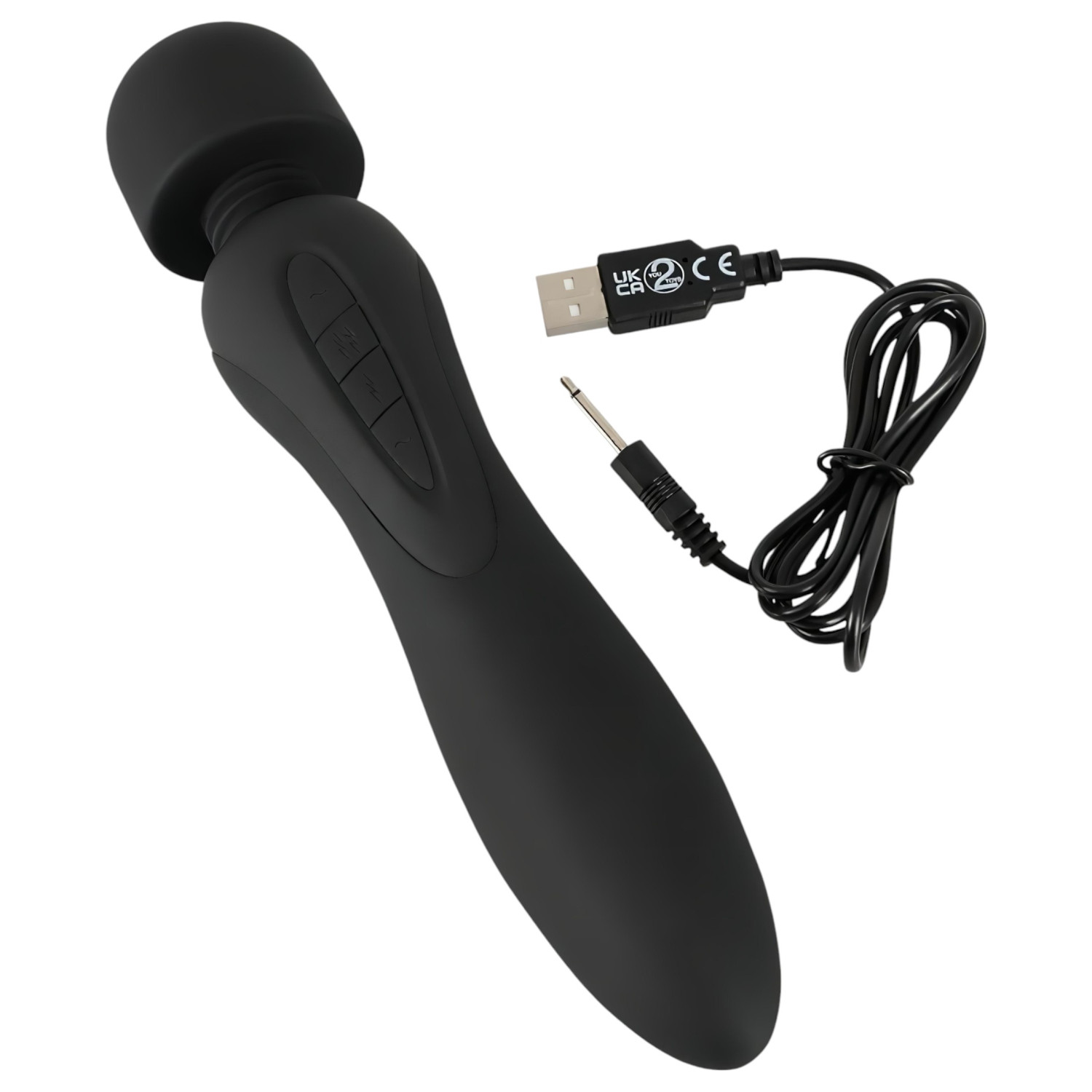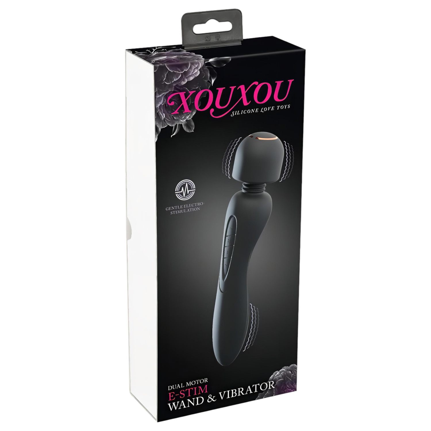 Un vibromasseur avec stimulation électro douce, parfait pour les débutant(e)s curieux-ses de l’électro, le tout en version 2-en-1 : baguette de massage et vibro classique !