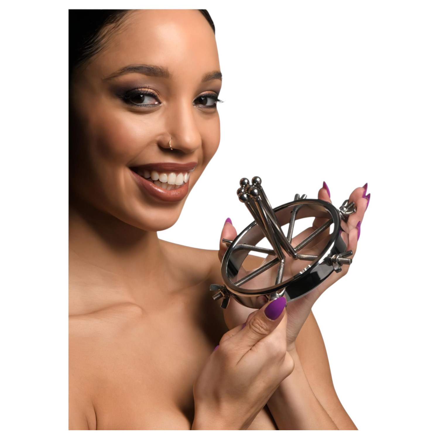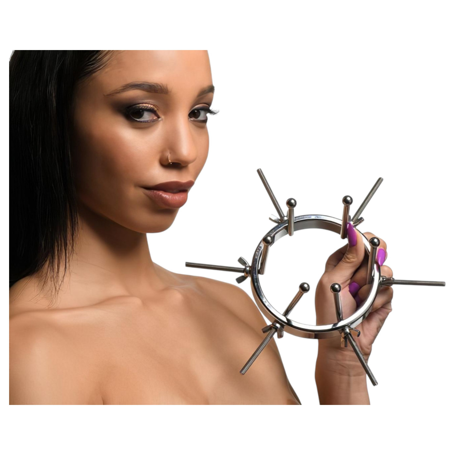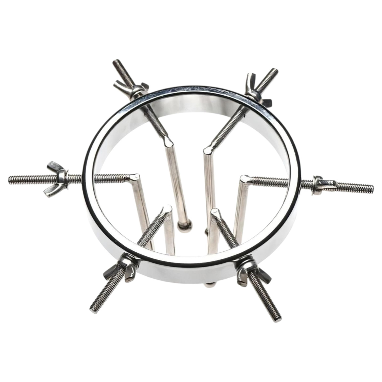Ce écarteur anal premium est spécialement conçu pour les utilisateurs expérimentés souhaitant vivre une expérience d'écartement intense et progressive. Les 6 barres lisses se terminent par de petites sphères, rendant l'écartement confortable et sûr. Le diamètre est réglable de 2,5 cm jusqu'à 10 cm, vous permettant d'explorer des expériences avancées et même de s'ouvrir à une taille de poing. Chaque barre peut être ajustée individuellement grâce aux vis à ailettes, vous permettant de personnaliser totalement l'écartement.