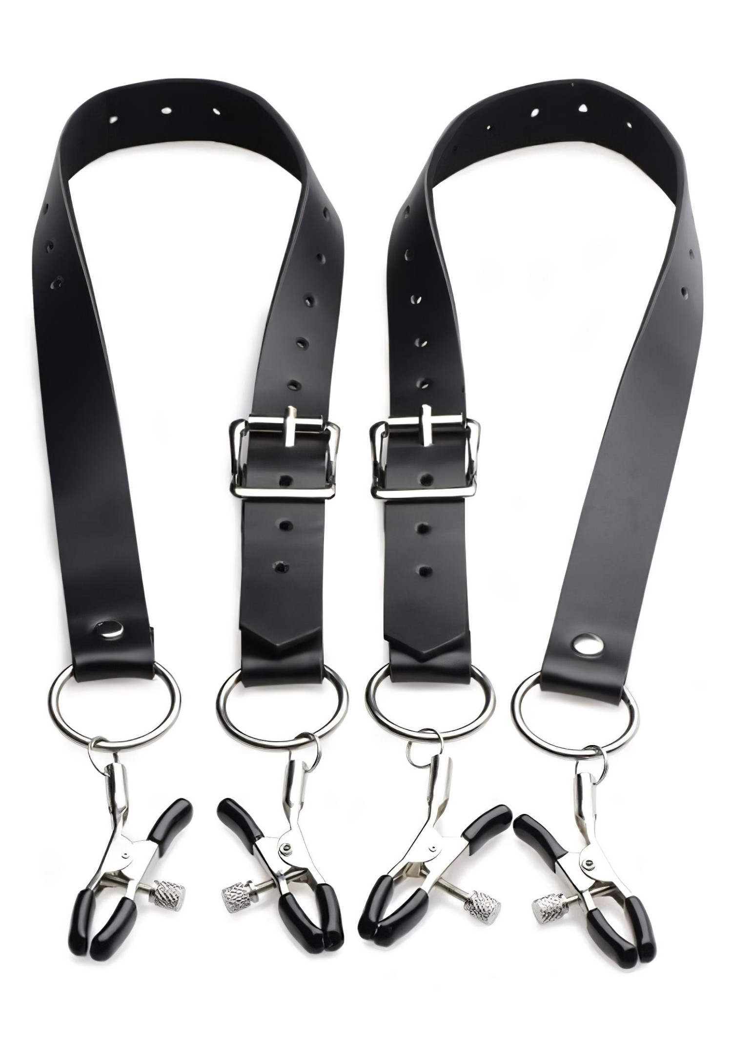 Des pinces intimes équipées de sangles réglables pour s’ajuster parfaitement à ta morphologie ou à celle de ton/ta partenaire, qui rendent le jeu de pénitence vraiment excitant.