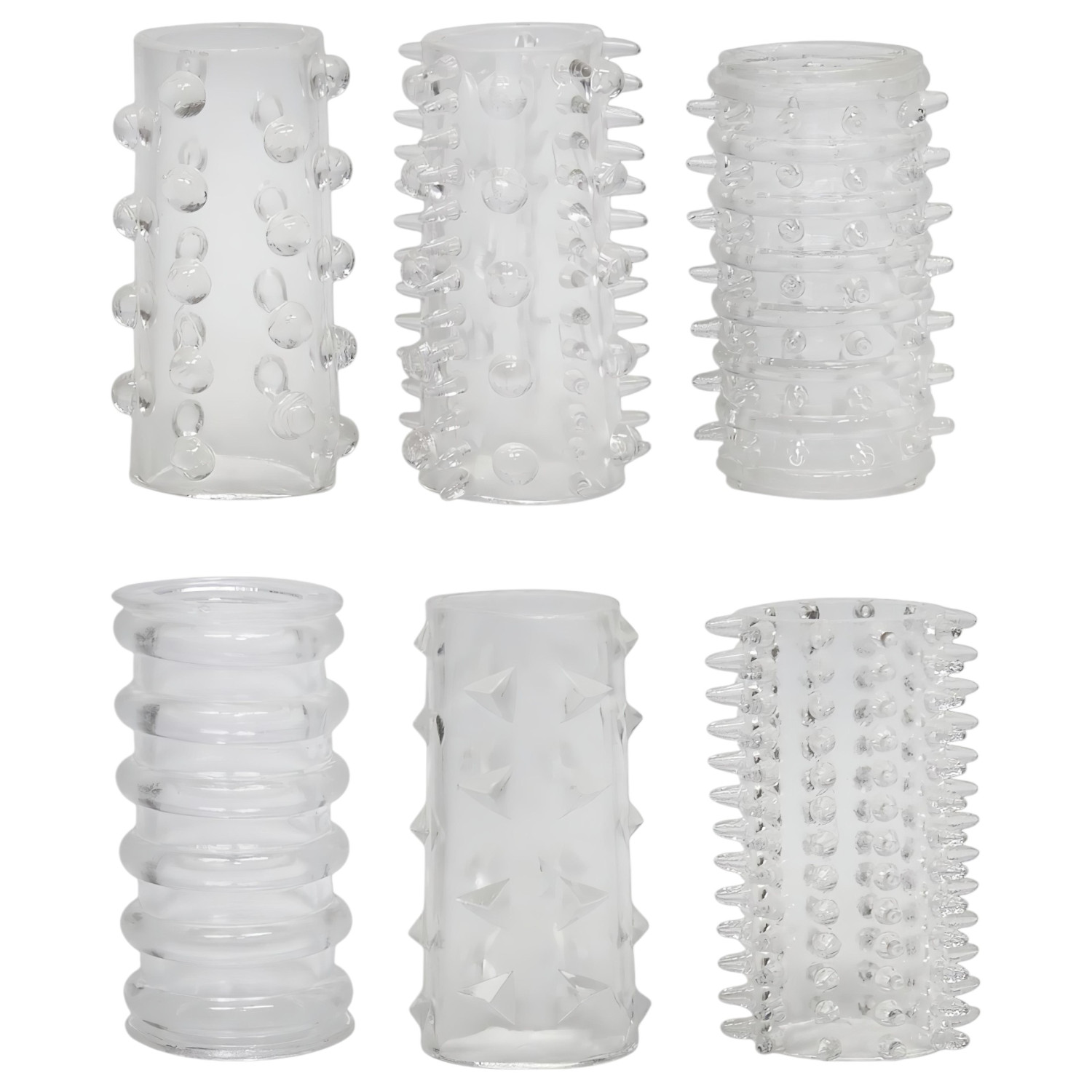 Ce set de 6 cockrings aux textures différentes est parfait si tu veux booster ta fermeté, ton endurance et offrir à ton/ta partenaire une stimulation supplémentaire. Les variations de rainures et de petites bosses apportent encore plus de sensations, tandis que la matière ultra souple reste confortable, peu importe la taille.