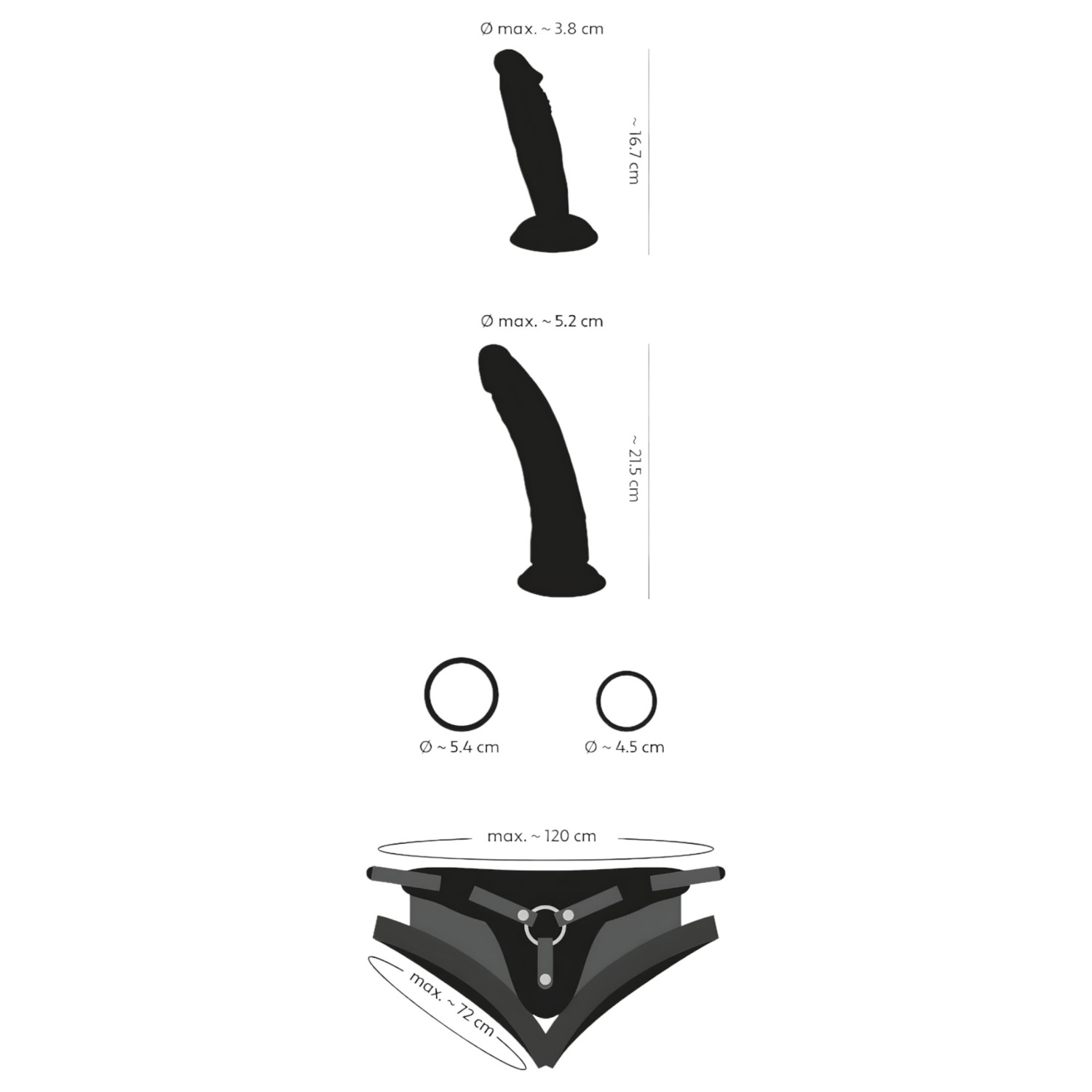 • Diamètre max. du petit godemiché : 3,5 cm
