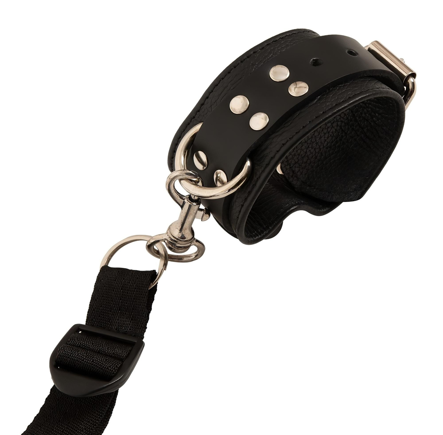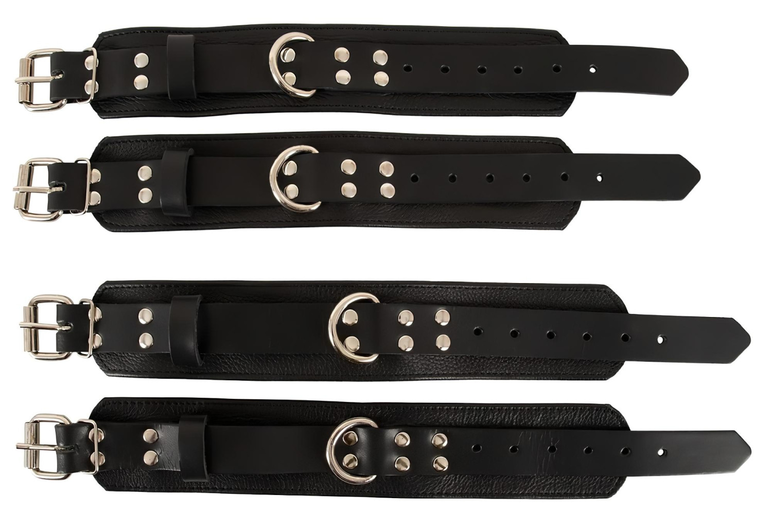 • 2 menottes pour les chevilles avec petits mousquetons en métal (pour attacher les jambes)