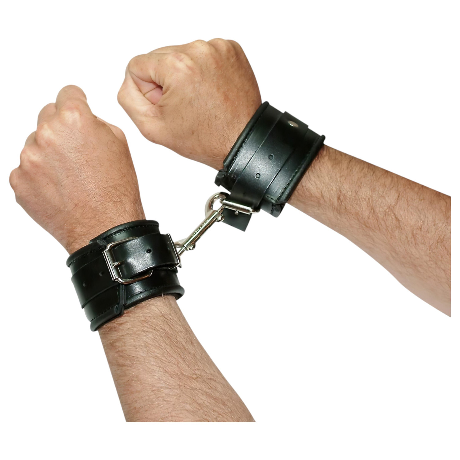 • 2 menottes en cuir véritable avec anneaux de fixation en D
